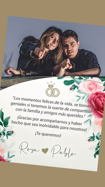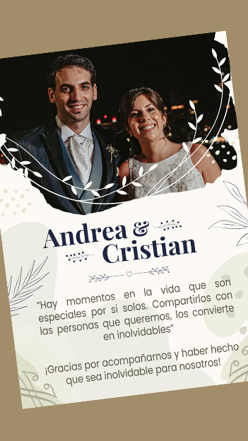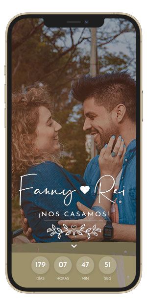 Personalizamos tu invitación con tus fotos, textos y datos, incluyendo las secciones y funciones que gustes.